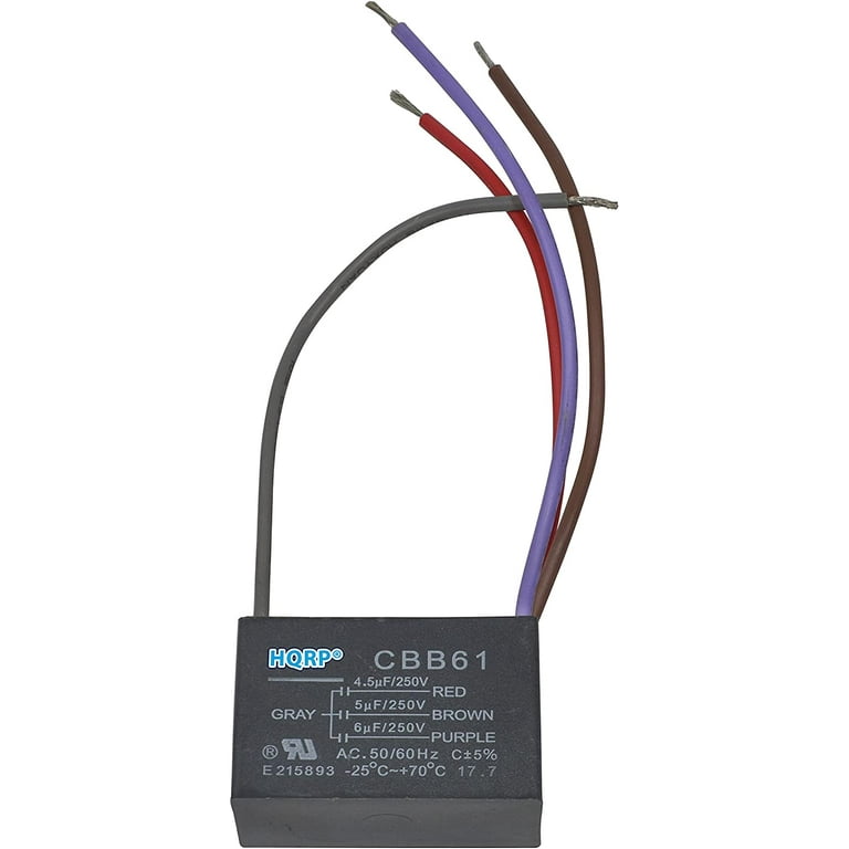 Hqrp Capacitor For Harbor Breeze Ceiling Fan 4 5uf 5uf 6uf 4 Wire Cbb61 Plus Hqrp Coaster Walmart Com